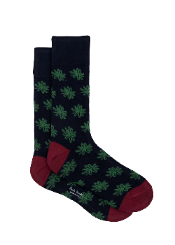 Paul Smith Men's Cotton Crew Socks - Green/Blue Floral Pattern