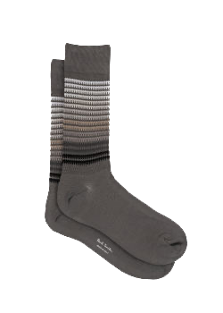 Paul Smith Men's Cotton Crew Socks - Grey Multi-Color Ribbed