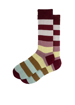 Paul Smith Men's Cotton Crew Socks - Burgundy Multi-Color Striped/Solid