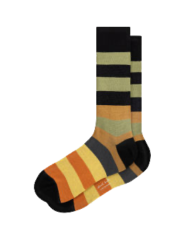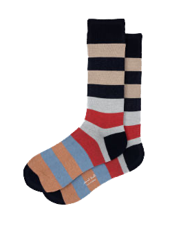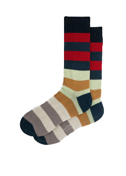 Paul Smith Men's Cotton Dress Socks - Multi-Color Block Stripe Pattern