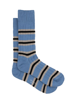 Paul Smith Men's Cotton Crew Socks - Light Blue/Black/Beige Striped