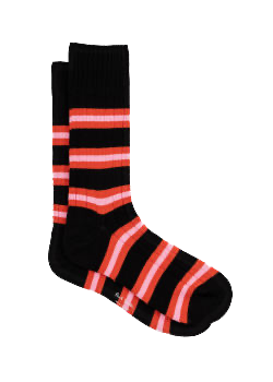 Paul Smith Men's Cotton Crew Socks - Black/Red/Pink Striped